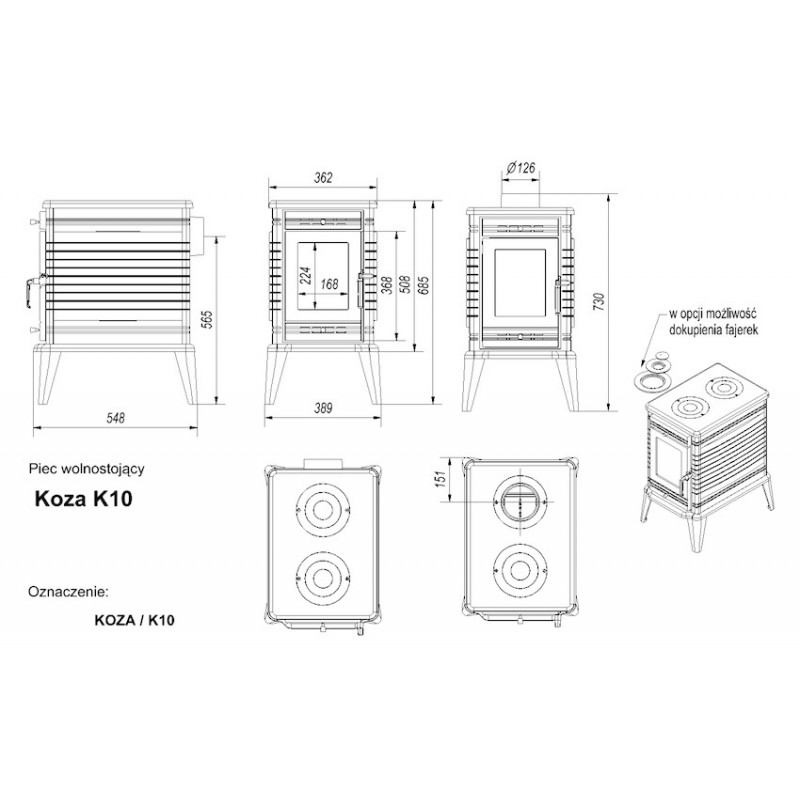 - Pro odeslání do Česka navštivte KRATKI KOZA K10 130 krbová kamna černá