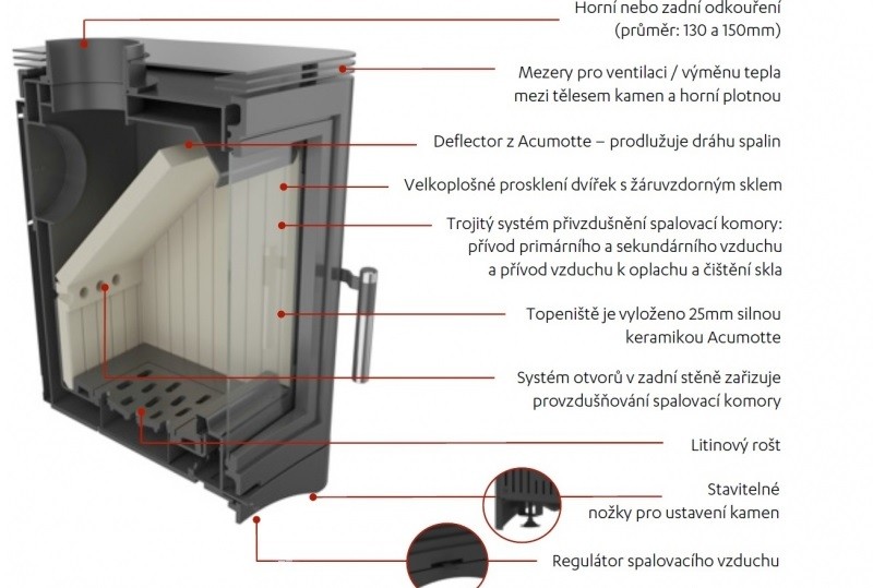 KRATKI Koza K5 / 150, 9kW krbové kachle s teplovzdušnáUnikátny krbové kachle Kratki Koza K5 sú vhodné predovšetkým do menších domov a pre rekreačné objekty. Vďaka absencii prívodu externého vzduchu je nemožno inštalovať do nízkoenergetických domčekov. Spracovanie vrchnej dosky s rebrovaním medzi telom kachlí a doskou zvyšuje prúdenie vzduchu cez túto časť a tým dochádza k rýchlejšej výmene tepla do miestnosti, kde sú kachle Kratki KOZA K5 inštalované.