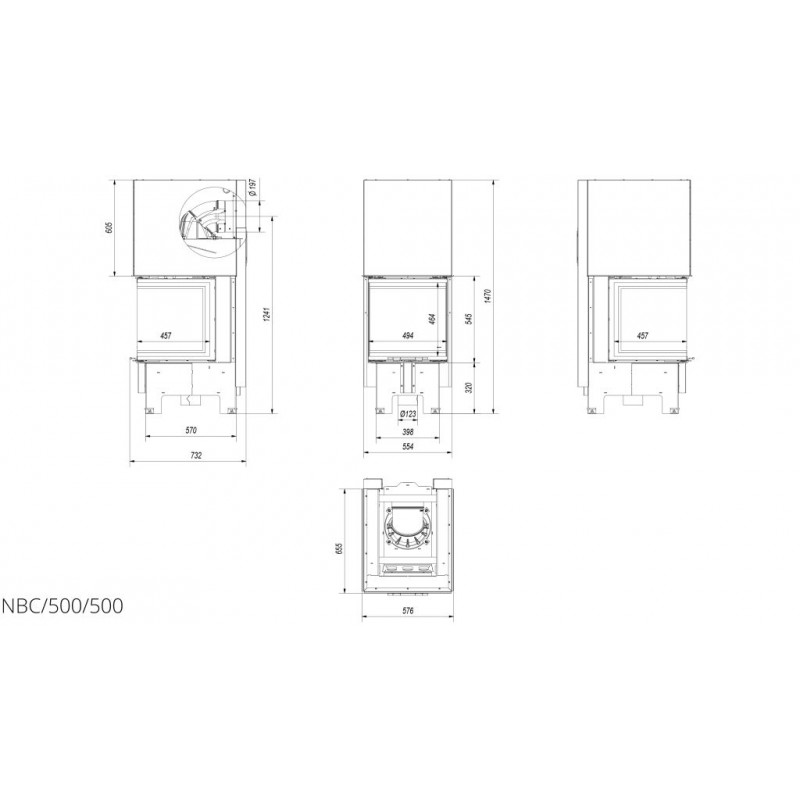 KRATKI NBC/500/500 8 kW krbová vložka teplovzdušná, ľavé, pravé sklo s výsuvomS externým prívodom vzduchu