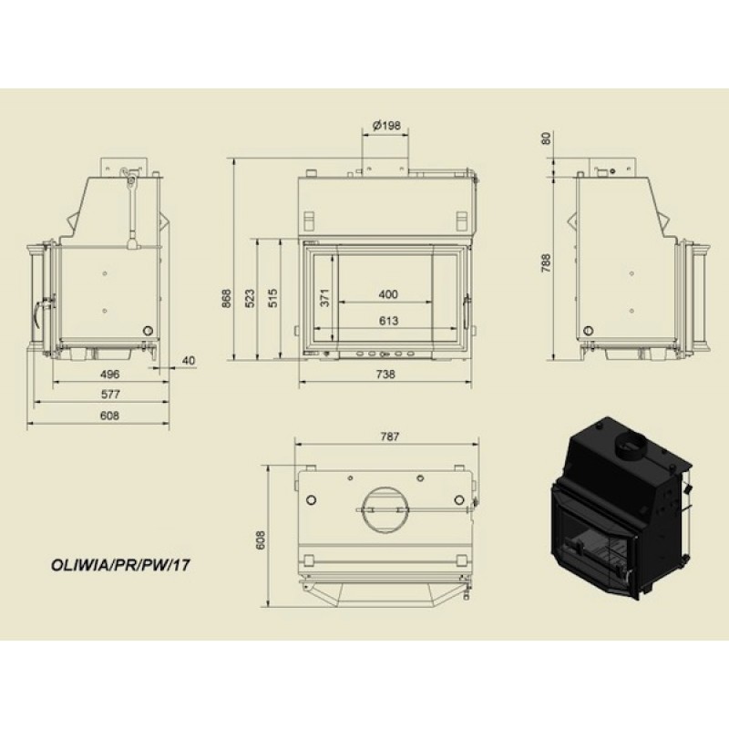 - Pro odeslání do Česka navštivte KRATKI OLIWIA/PR/PW/17/W krbová vložka teplovodní, prizmatické sklo, s chladící smyčkou