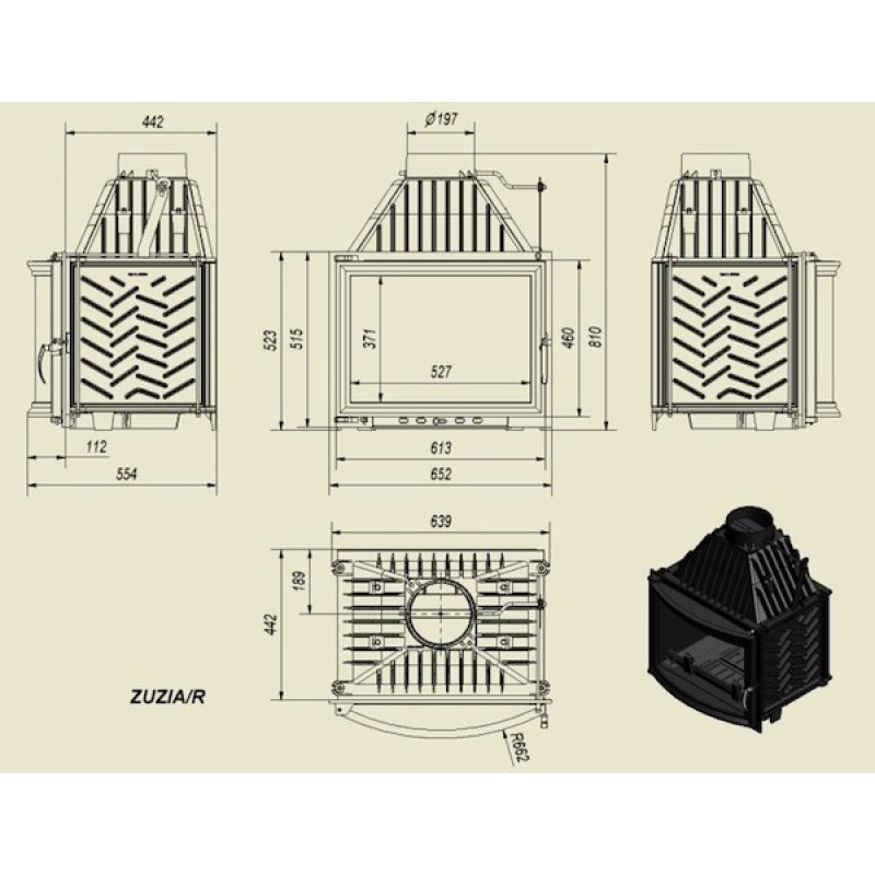 - Pro odeslání do Česka navštivte KRATKI ZUZIA/R 16 kW krbová vložka teplovzdušná, obloukové sklo