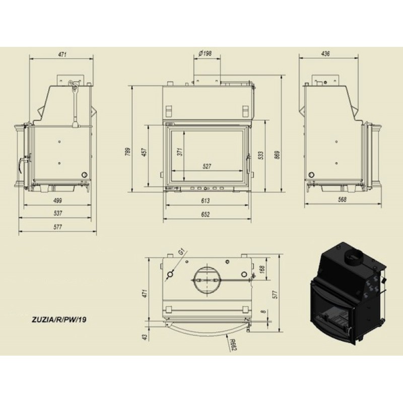 - Pro odeslání do Česka navštivte KRATKI ZUZIA/R/PW/19 krbová vložka teplovodní, obloukové sklo, bez chladící smyčky
