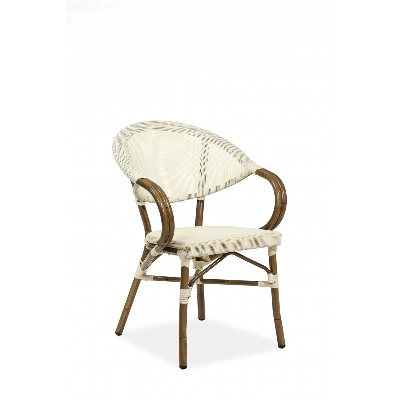 Kreslo Gastro LENA 1009/9Veľmi pekné stohovateľné kreslo vhodné do interiérov aj exteriérov. Vďaka vysokej nosnsoti má kreslo uplatnenie v gastro prevádzkach. Kreslo je vyrobené z hliníka, ale kostra je zhotovená ako imitácia bambusu. Výplet je z kvalitnej textílie 5x3 / 2x2 / 1x1.