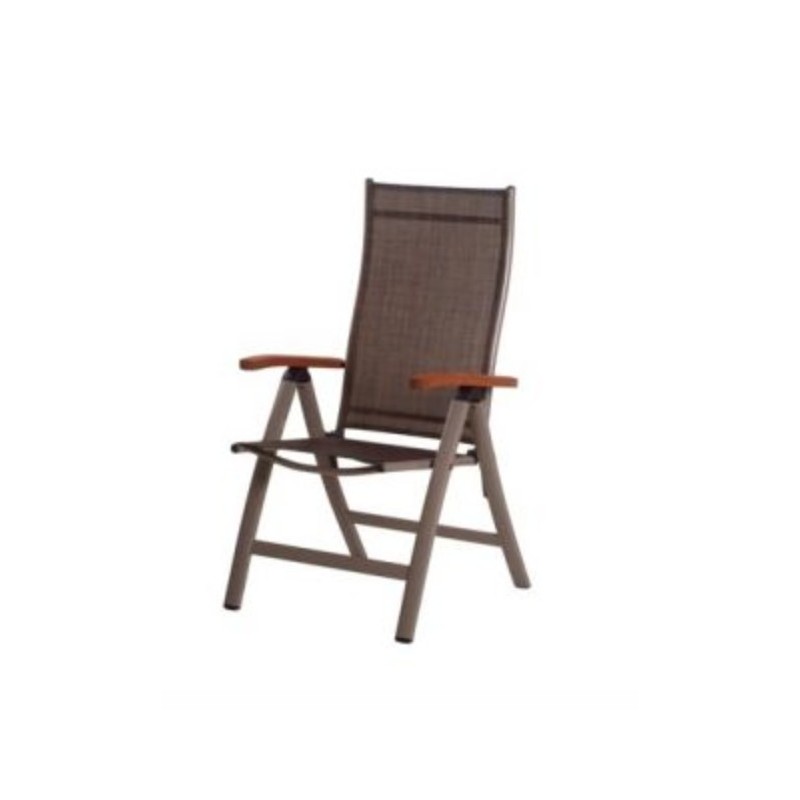 Kreslo polohovacie ELBE champagne 67/1003Záhradné kreslo, ktoré ponúka 5 polôh pre pohodlné posedenie a relax na Vašej záhrade. Hliníková kostra farby champagne s drevenými područkama + textílie 4x4m farby cappuccino. Textília je odolná voči počasiu.