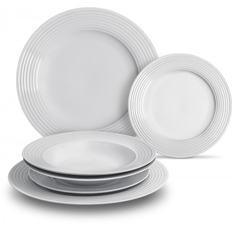 Porcelánová sada tanierov pre každodenné použitieSada jedálnych tanierov obsahuje 2x plytký tanier, 2x hlboký tanier a 2x dezertný tanier