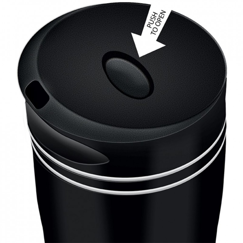 Termohrnček vyrobený z vysoko kvalitnej nehrdzavejúcej oceleTlačidlový mechanizmus otvorenia termohrnčekov vyrobený z vysoko kvalitného plastu