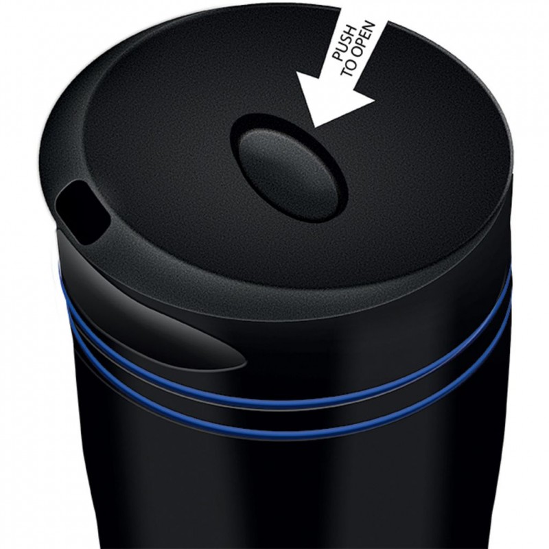 Termohrnček vyrobený z vysoko kvalitnej nehrdzavejúcej oceleTlačidlový mechanizmus otvorenia termohrnčekov vyrobený z vysoko kvalitného plastu