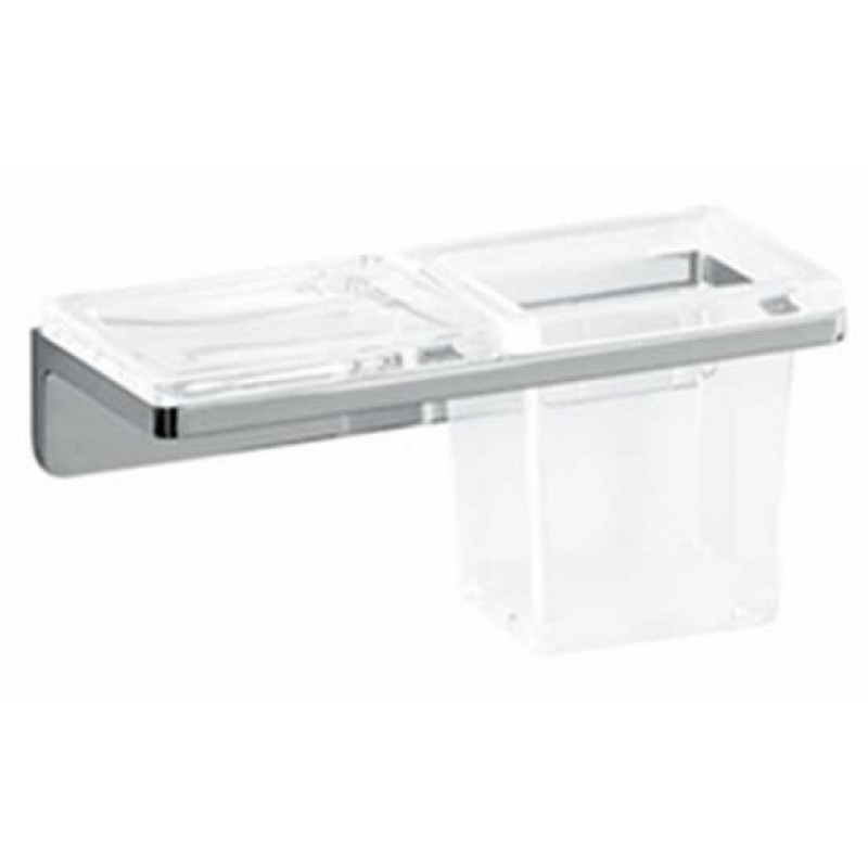 Kúpeľňový Chrómové - sklenený držiak pohára a mydlovnička v jednom