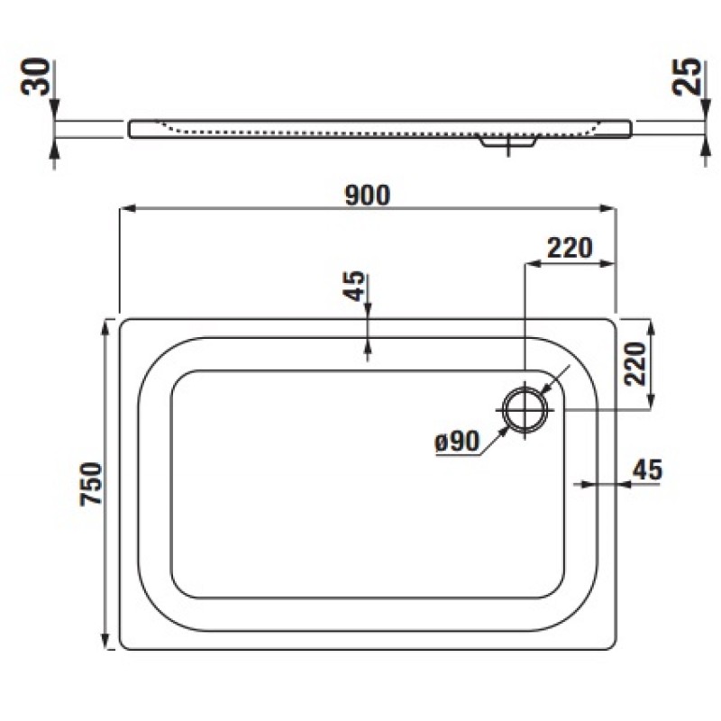 rozmery: 900 x 750 x 25 mm