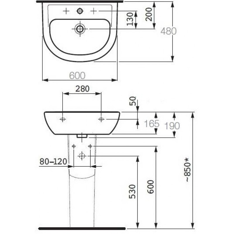 Laufen PRO B Umývadlo 60x48 cm, s otvorom, biele, 8.1095.2.000.104.1- 1 otvor pre batériu uprostred