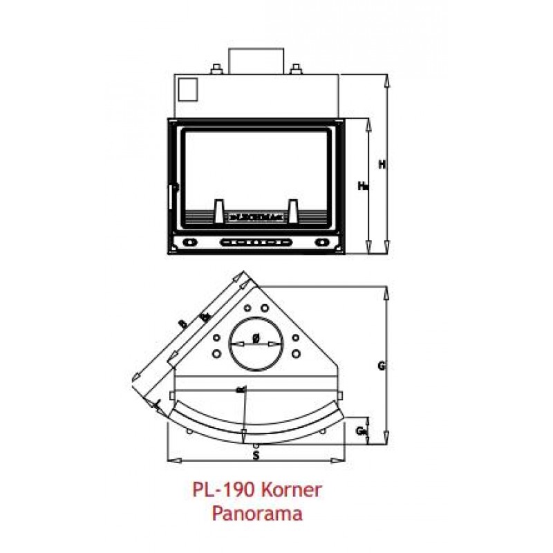 Lechma PL-190 Körner Panorama teplovodná krbová vložka 8 kW, 1 bar, AQR-PAN8ROHUOKrbová vložka rohová.
