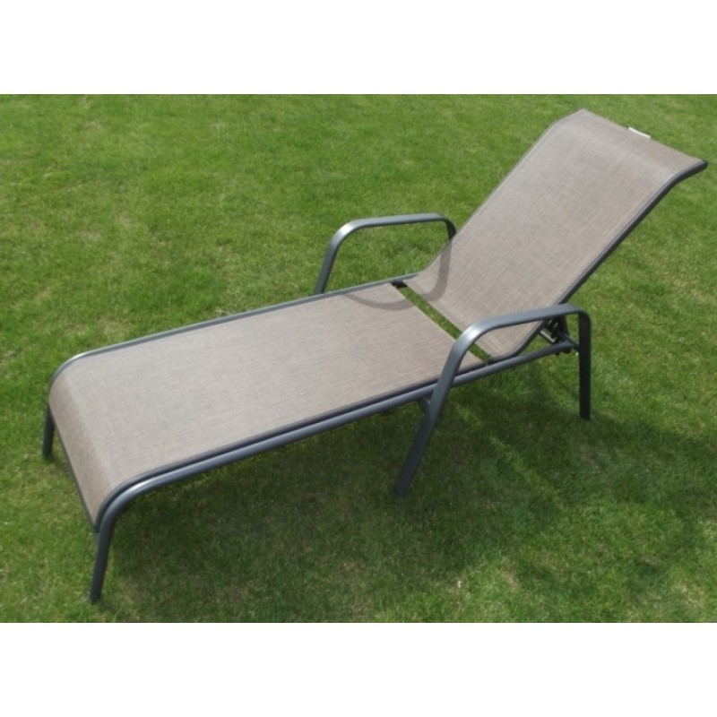 Polohovacie lehátko so stabilnou kovovou kostrou šedej farby. Sedák a oporná plocha je z textílie. Ležadlo je polohovateľné. Je vhodné na záhrady i terasy.Kovové lehátko polohovacie s textíliou 2x1