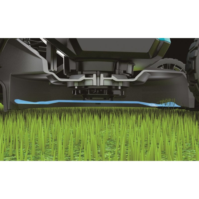 Výkonný bezuhlíkový motor ponúka dlhú životnosť, vysokú účinnosť a minimálnu údržbu. Technológia XPT umožňuje použitie kosačky aj v prostredí so zvýšenou prašnosťou alebo vlhkosťou. Elektronická kontrola otáčok a elektronická brzda motora zabezpečujú plynulý a bezpečný chod.