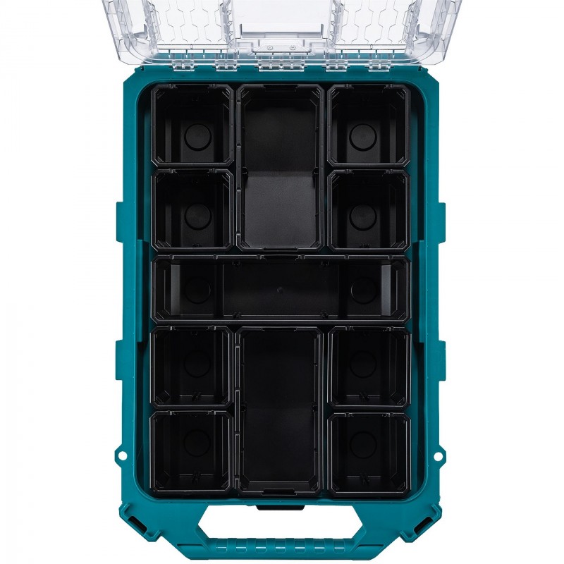 - Má rôzne veľkosti zásobníkov na usporiadanie malých aj veľkých dielov, s nízkoprofilovým dizajnom pre organizáciu drobných súčiastok.