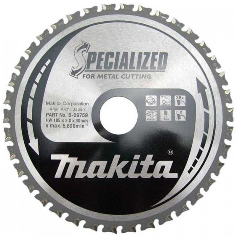 MAKITA pílový kotúč 185x30mm 38T B-09759Špeciálna rada pílových kotúčov na rezanie kovov okružnými a skracovacími pílami. Konštrukcia kotúčov je upravená pre spoľahlivý a rýchly rez v rôznych typoch oceli. Veľkou výhodou kotúčov je minimálna iskrivosť, veľmi čisté rezy bez vytrhávania a mans náklady na rez.