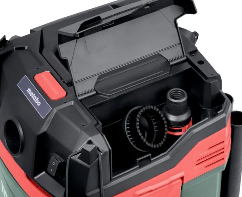 Vysávač Metabo AS 20 L PC oceníte aj pre jeho premyslenú konštrukciu. Praktická priehradka s odklápacím vekom ponúka priestor na drobné príslušenstvo a rýchly systém Quick umožňuje jednoduchú a rýchlu výmenu jednotlivých komponentov. Tento kompaktný profesionálny vysávač Metabo je ideálny na upratovanie prachu, nečistôt aj kvapalín a predstavuje výborné riešenie pre každého, kto hľadá výkonný vysávač do dielne, na stavbu aj komerčné použitie.
