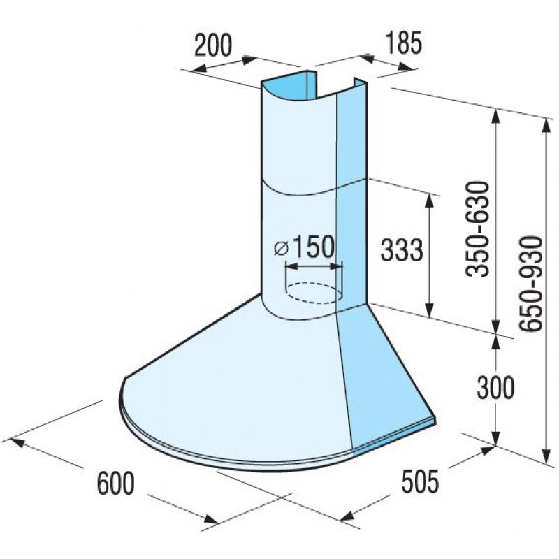 - Horný odťah 150 mm