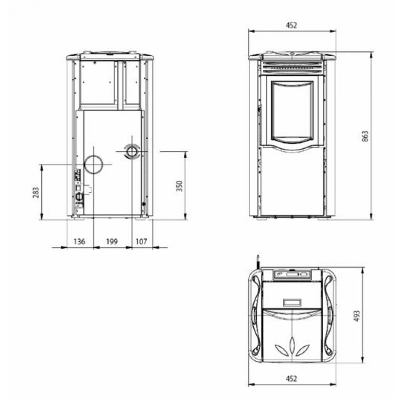 NORDICA EXTRAFLAME Rosy NERO 6kW krbová kamna na pelety černá 1273502 : Vysoká teplota, lakovaná ocel krytiny a horní kryt. Žáruvzdorné keramické sklo. Litina výměník tepla. Zadní vývod 80mm.Rozměry mm (l, h, p): 452x863x493
