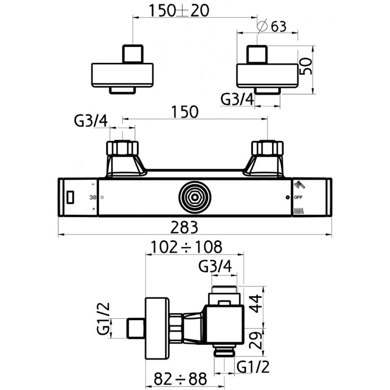 - Magyarországra történő szállítás NOVASERVIS AQUASAVE SHOWER THERMOSTATIC MIXER WITH UPPER AND LOWER OUTLET,150MM 2862/1,0