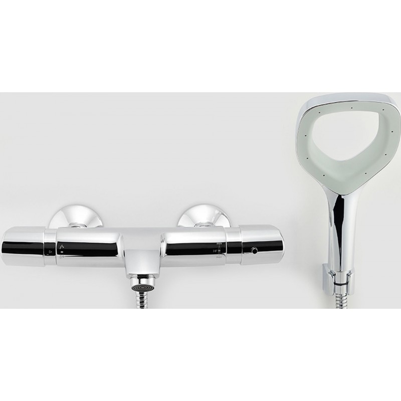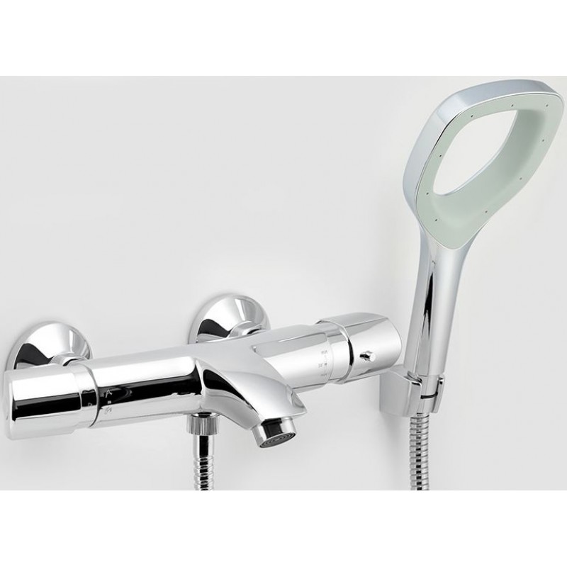 Kvalitná a odolná termostatická kartuša KEROX s predĺženou zárukou 7 rokov. Prvotriedne chrómové prevedenie. Vaňová termostatická nástenná batéria s rozstupom 150 mm a prepínacím ventilom. Súčasťou balenia je kovová sprchová hadica 150 cm, pevný držiak sprchy a úsporná ručná sprcha.