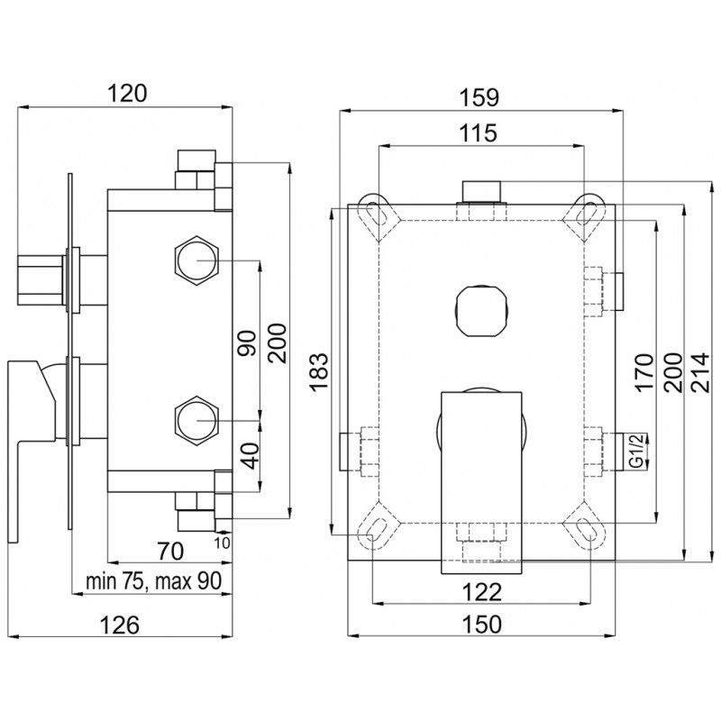 • Vaňová a sprchová podomietková batéria s boxom a keramickým prepínačom pre 3 vývody.
