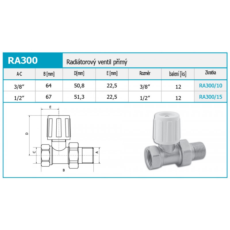 - Pro odeslání do Česka navštivte NOVASERVIS radiátorový ventil přímý 3/8" RA300/10