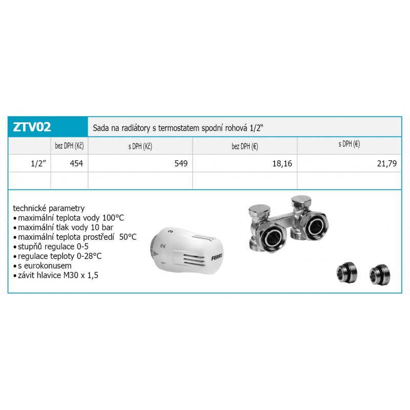 - Pro odeslání do Česka navštivte NOVASERVIS Sada na radiátory s termostatem spodní rohová 1/2" ZTV2