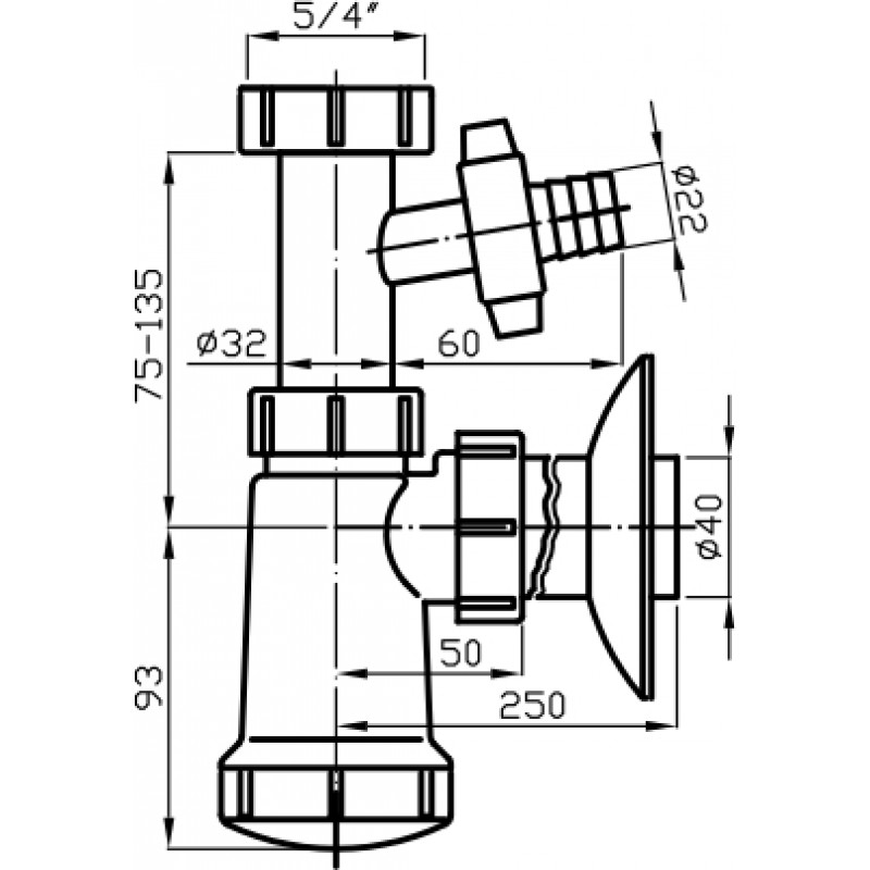 Závit 5/4 ". Priemer odpadu 40 mm. Možnosť pripojiť práčku alebo umývačku. Určený pre batérie s uzáverom výpuste.
