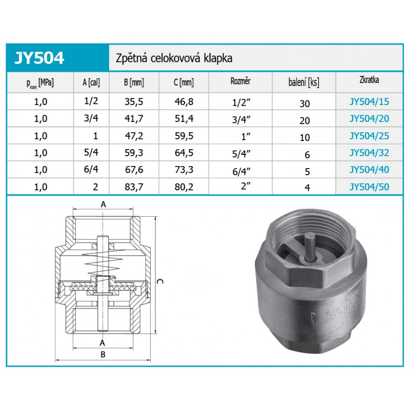 - Pro odeslání do Česka navštivte NOVASERVIS Zpětná celokovová klapka 1"JY504/25