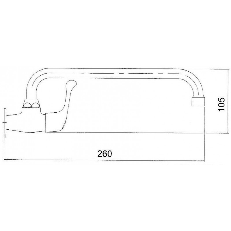 • Umývadlová nástenná batéria iba na studenú (zmiešanú) vodu s otočným rúrkovým ramienkom s horným vývodom vody a celkovou dĺžkou 260 mm.