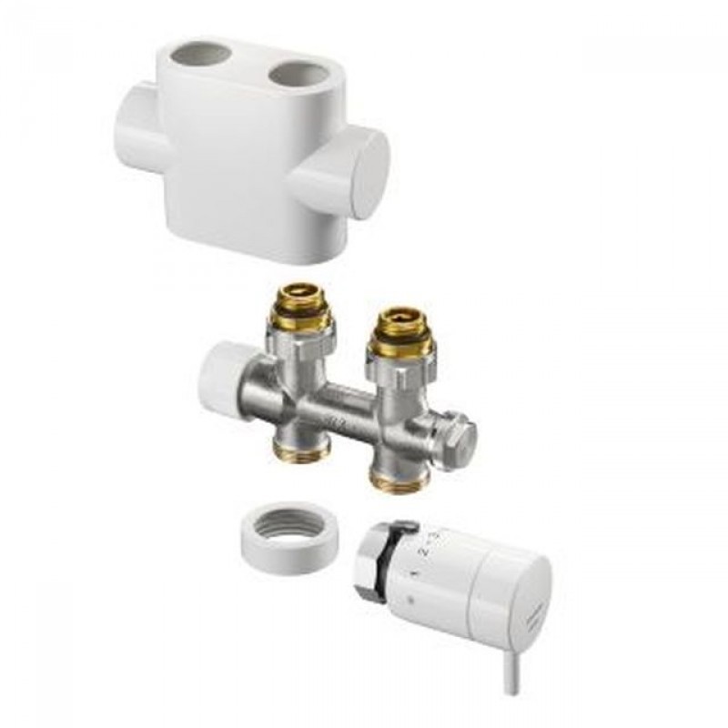 OVENTROP-Pripojovacia sada pre kúpeľňové vykurovacie telesá Multiblock T / pinox H - pre použitie na vykurovacie telesá s pripojením prívodu a spiatočky. rozteč potrubia 50 mm. vykurovacie telesá s vnútorným závitom Rp 1Zloženie: - Multiblock T, pripojovacia armatúra s prednastavením, dvojtrubková armatúra - dizajnové zakrytie - termostatická hlavica Pinox H s kvapalinovým čidlom