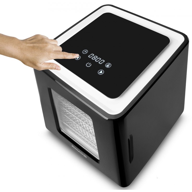 • Zverte úlohu uchovanie potravín ako ovocie, zeleniny, mäsa, byliniek a ďalšieho našej sušičke PHILCO PHFD 7067. Perfektného výsledok dosiahnete vďaka silnému motoru, ktorý rozprúdi teplý vzduch rovnomerne celým vnútorným priestorom sušičky, a vy sa nebudete musieť starať úplne o nič okrem počiatočného nastavenia doby prípravy a teploty. Vďaka horizontálnemu prúdeniu vzduchu je teplota vo všetkých úrovniach rovnaká a vy sa nemusíte obťažovať prehadzovaním jednotlivých plat počas procesu dehydratácie.