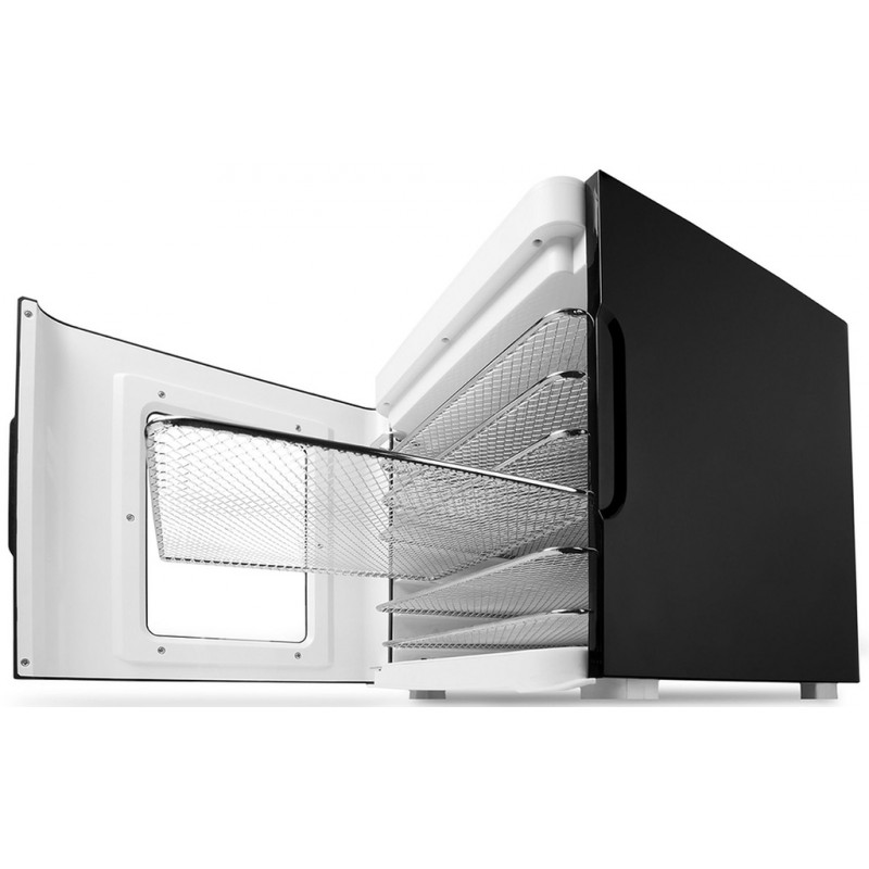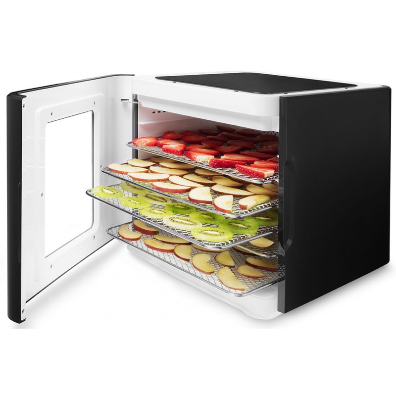 • 6 nerezových plat o veľkosti 30x25 cm zaistí dostatočný priestor pre vaše sušenie. Súčasťou sušičky je potom aj vyberateľný tácka na zvyškovú vodu a prípadný neporiadok, ktorý vznikne na dne počas sušenia. Je jednoduché ho vybrať, umyť a opäť umiestniť pre ďalšiu várku.