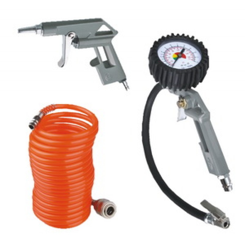 Pneu sada 3 dielnaSada obsahuje pištoľ ofukovacia, pištoľ fúkacia s manometrom a špirálovou vzduchovú hadicu.