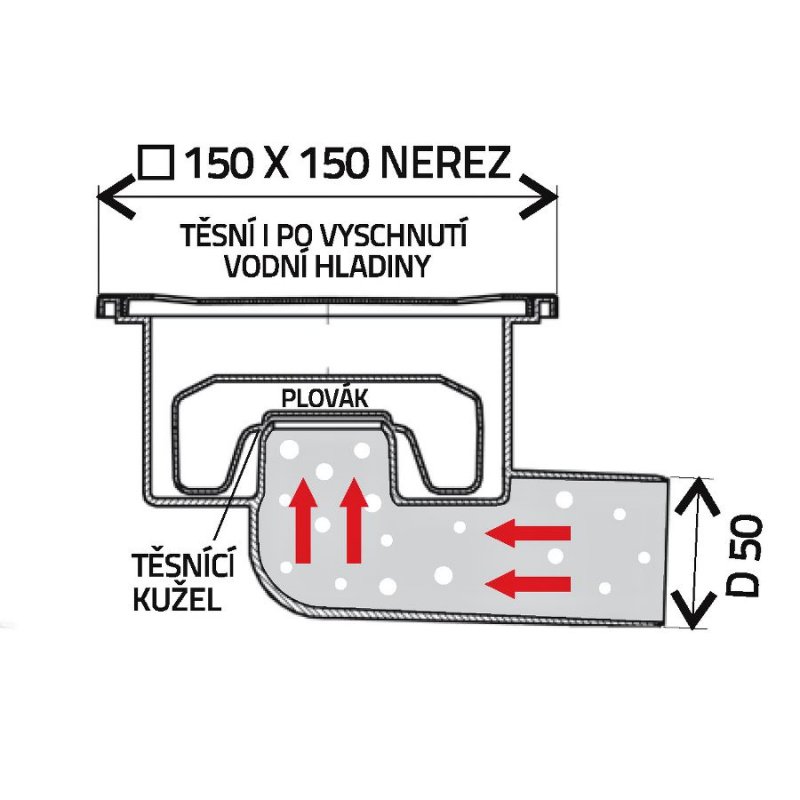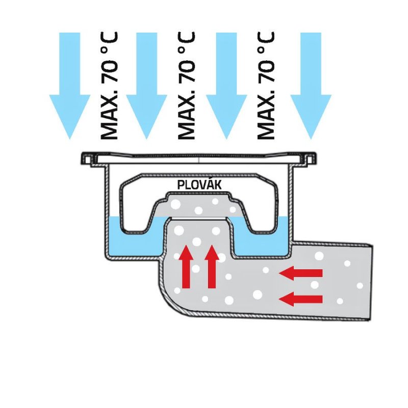 Podlahová vpusť bočná DN50/95XN nerez Neptún 326XNPodlahový vpust s plavákom, je určený pre vnútorné použitie. Vyrába sa v prevedení s celonerezovým povrchom. Pri poklese vodnej hladiny plavák NEPTUN uzatvára odtok a tým zabraňuje spätnému prenikaniu zápachu z kanalizacnej potrubia. Vyrobené z PP, ABS a nerezovej ocele DIN 1.4301. Zaťaženia K3 - 300 kg, odolnosť do 70 ° C, norma EN 1253-1.