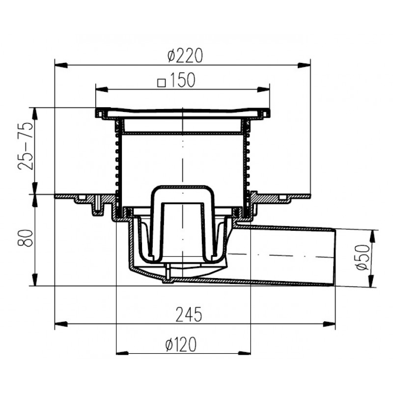 Podlahová vpusť bočná PVBU50PR4 univerzálna s prírubou 381F