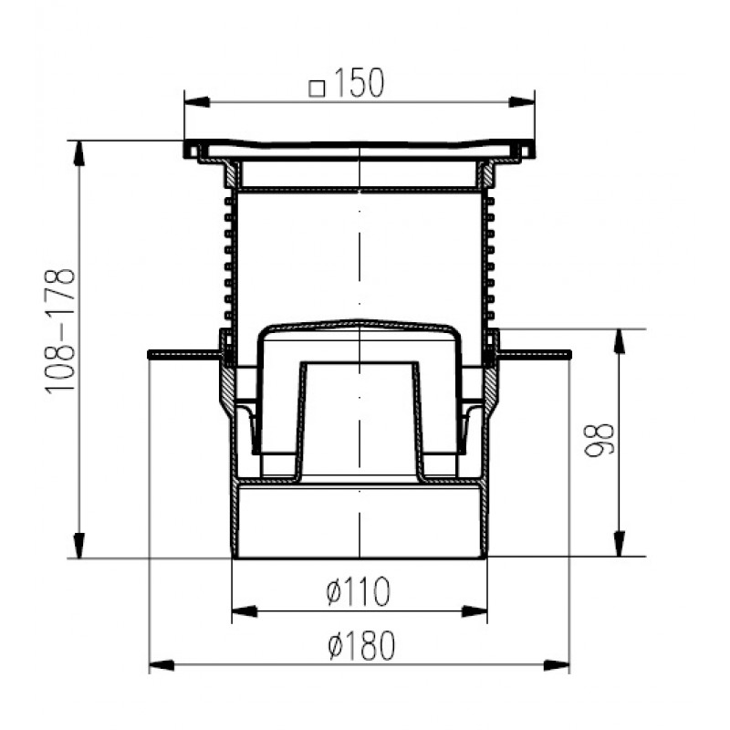 - Pro odeslání do Česka navštivte Podlahová vpusť DN 110 (PV110N-PR4) celonerez s přírubou 441