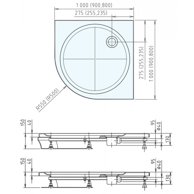 POLYSAN Sprchová vanička SONATA R55 90 štvrťkruhová s podstavcom