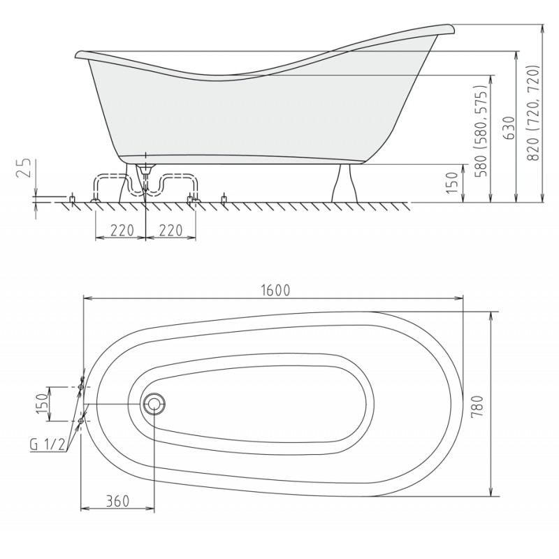POLYSAN Vaňa RECTIME 160 voľne stojace, nohy bronz- Rozmery: 160x73x44 cm