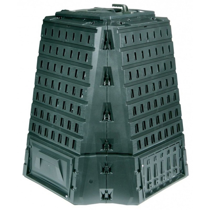 Zostavený zo 4 dielov, s veľkým odklápacím otvorom pre odber kompostu.