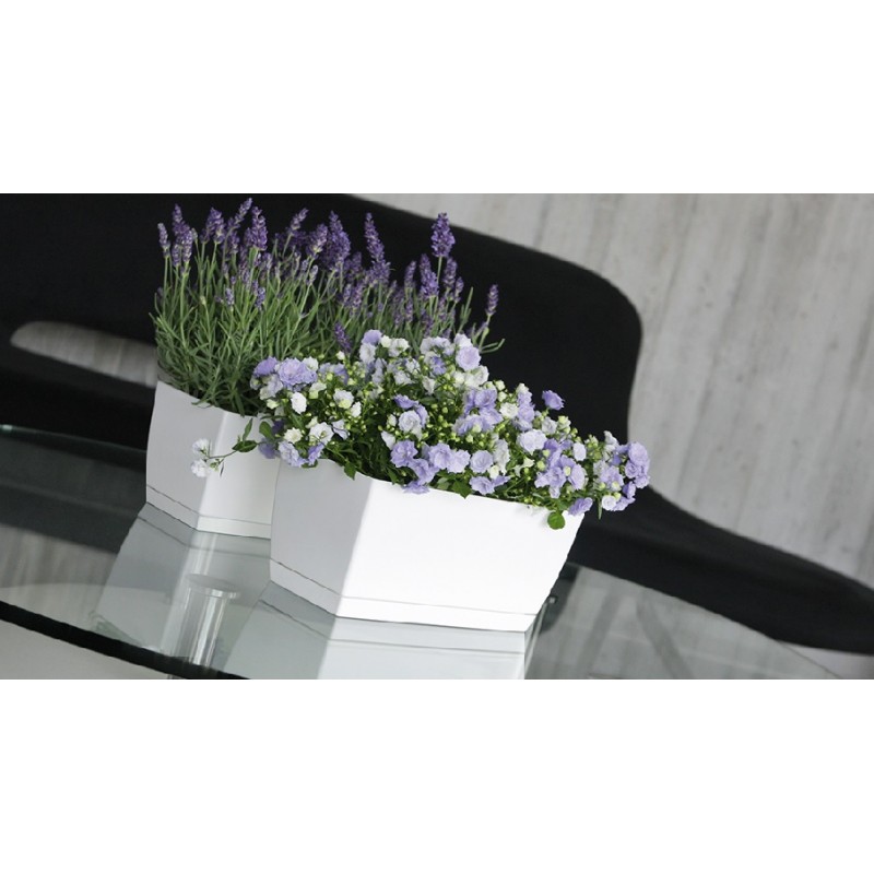 Truhlík s miskou je originálny a moderný s lesklým povrchom.Vhodný pre celoročné vonkajšie aj vnútorné použitie, na balkón, okenné parapety, terasu či záhradu. Je vyrobený z vysoko kvalitného, ľahko umývateľného materiálu, odolný voči mrazu a poveternostným vplyvom.