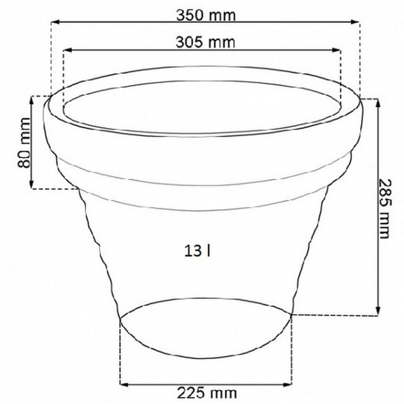 Kvetináč je vhodný na celoročné vonkajšie aj vnútorné použitie, na balkón, terasu či záhradu. Je vyrobený z vysoko kvalitného, ľahko umývateľného materiálu, odolný voči mrazu a poveternostným vplyvom.Materiál: plast