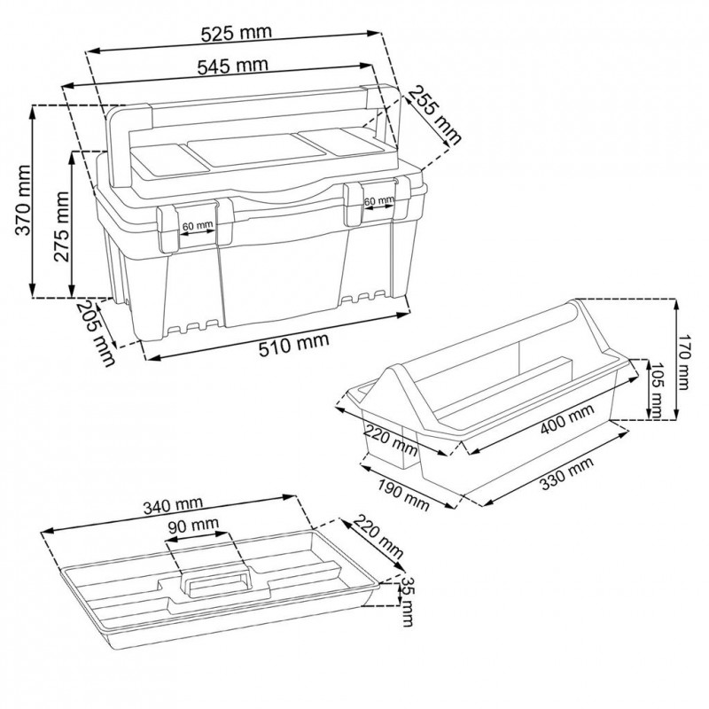 Box na náradie z radu Firebird má vnútorný odnímateľnú priehradku a 2 alebo 3 priehľadné organizéry na veku. Vďaka širokému, profilovanému držadlu a dvoma pevným, hliníkovým zámkom v ňom môžete prenášať náradie vážiace od 12 do 27 kg. Je vyrobený z vysoko kvalitného plastu, ktorý sa vyznačuje vysokou pevnosťou a odolnosťou voči mechanickému poškodeniu.parametre: