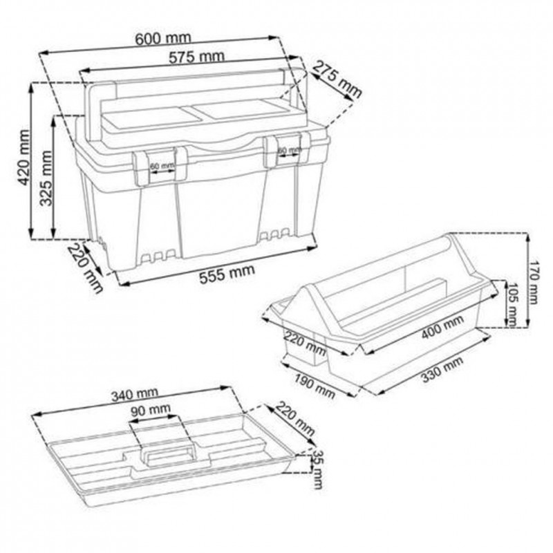 Box na náradie z radu Firebird má vnútorný odnímateľnú priehradku a 2 alebo 3 priehľadné organizéry na veku. Vďaka širokému, profilovanému držadlu a dvoma pevným, hliníkovým zámkom v ňom môžete prenášať náradie vážiace od 12 do 27 kg. Je vyrobený z vysoko kvalitného plastu, ktorý sa vyznačuje vysokou pevnosťou a odolnosťou voči mechanickému poškodeniu.parametre: