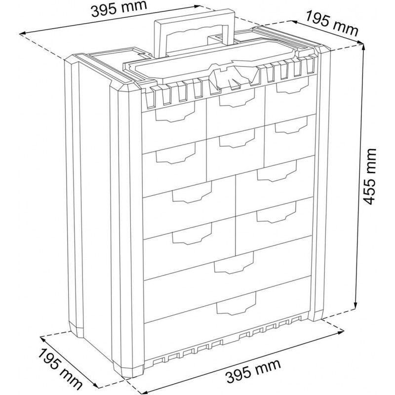 PROSPERPLAST MULTICASE Cargo Plastový organizér, 400 x 200 x 458 mm NS601- Model Multicase Cargo NS601 má 6 malých, 4 stredné, 2 veľké zásuvky a praktický organizér.