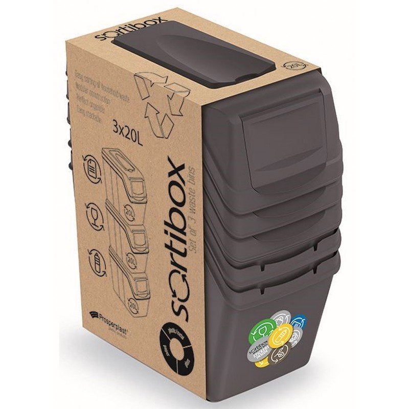 - Pro odeslání do Česka navštivte Prosperplast SORTIBOX I Sada 3 odpadkových košů 3x20l, antracit ISWB20S3