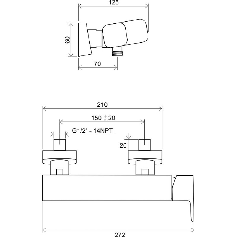Pripevnenie sprchové batérie na stene je o 10 ° naklonené smerom k ruke. Páka sa tak pohodlne uchopí, ale napriek tomu pri sprchovaní neprekáža.parametre: