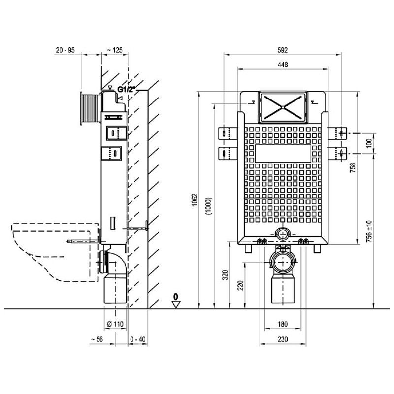 RAVAK WC modul W/1000 k obmurovanie X01458Rozmer: 1062 x 592 x 145 - 220 mm