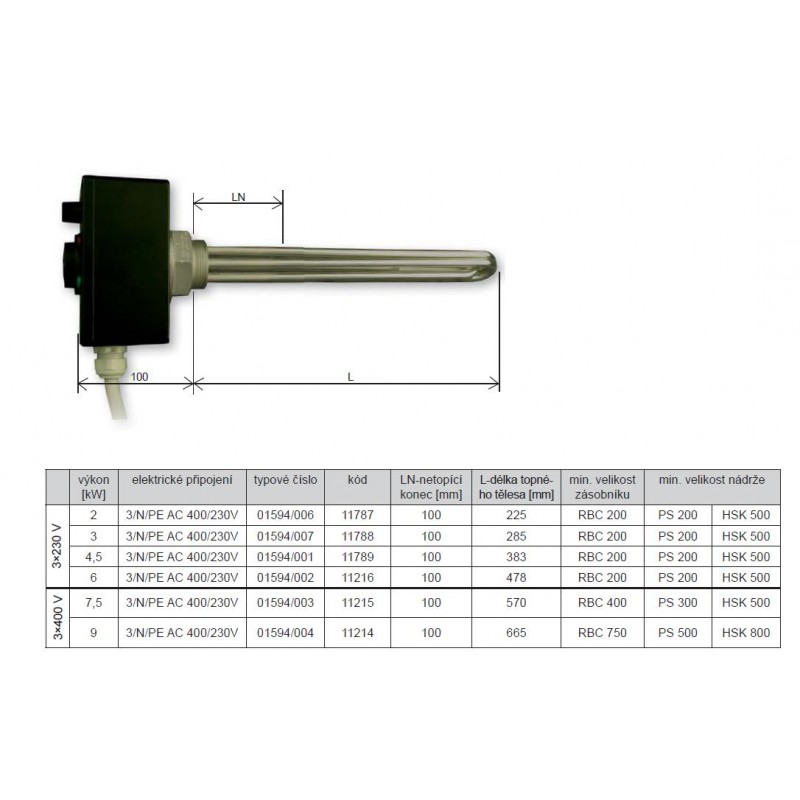 vhodná aj pre zásobníky TV. Mosadzná hlavica so závitom G 6/4 ", 3x230 V/400 V.