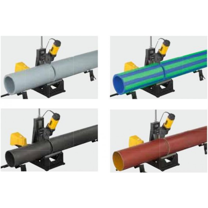 Stroj na delenie rúrok k rýchlemu , pravouhlé delenie rúrok priemer ( 40 ) 100 - 225 mm , bez vonkajšieho otrepu . Pre rúrky systémov s lisovanými tvarovkami z nehrdzavejúcej ocele , uhlíkovej ocele , medi , priemer 54 - 225 mm . Pre oceľové rúrky EN 10255 (DIN 2440) DN 50 - 150 , priemer 2 - 6 " , liatinové rúrky ( SML ) EN 877 ( DIN 19522 ) DN 50 - 200 , plastové rúrky SDR 11 , hrúbka steny s 21 mm , priemer 40 - 225 mm , vrstvené trubky priemer 40 - 110 mm . S bezúdržbovou prevodovkou , osvedčeným univerzálnym motorom 230 V , 50 - 60 Hz , 1200 W. Otáčky 115 min - 1 . Vodiace kladky z kalených presných oceľových trubiek . Bezpečnostný nožný spínač . Prstencový kľúč . bez rezného kolieska . 2 kusy výškovo nastaviteľných podpier trubiek priemer 100 - 225 mm , priemer 4 - 6 " .
